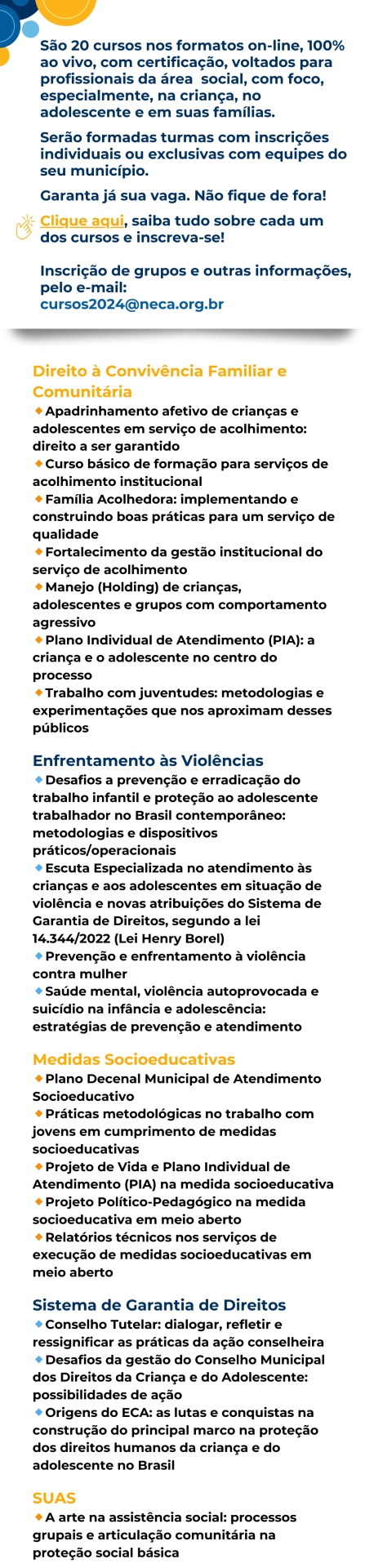 Inscrições Abertas! Confira os cursos que o Neca oferece neste 2º semestre de 2024!Por admin / 29 de fevereiro de 2024