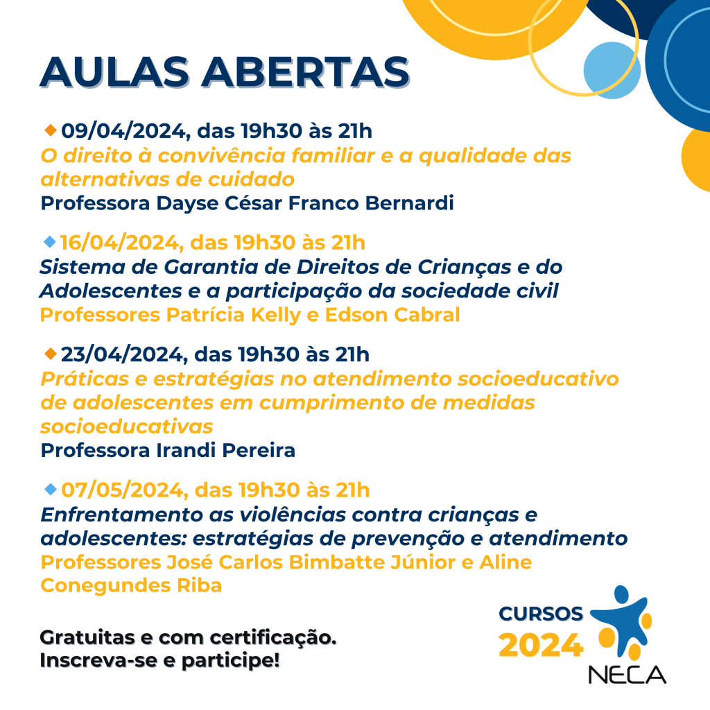 o 📢 Inscreva-se e participe das Aulas Abertas do Neca! 🔸09/04/2024, das 19h30 às 21h – O direito à convivência