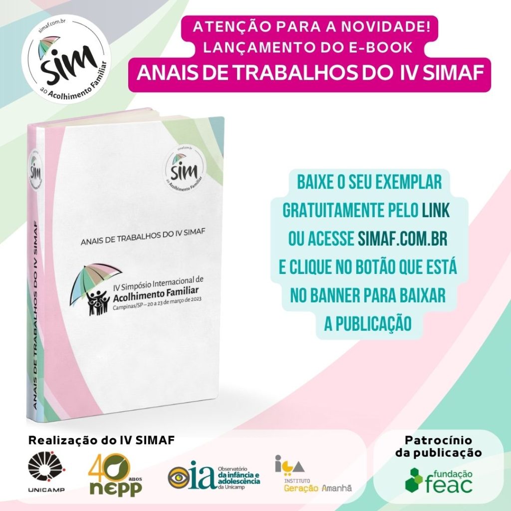 o Foi lançado o E-Book dos Anais de Trabalhos do IV Simpósio Internacional de Acolhimento Familiar – SIMAF. O evento